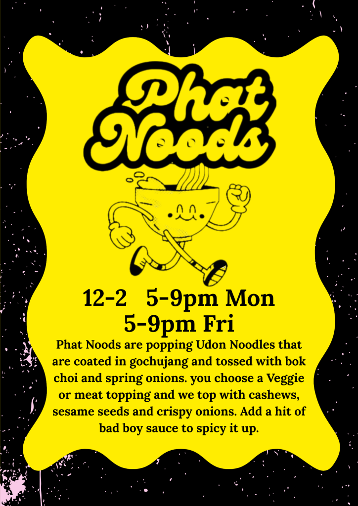 Our aim is to bring amazing moments and feelings to our customers’ day. We do this by serving the best damn soulful food in the world. Our awesome fresh pressed soft corn tacos are handmade and grilled to order. Phat Noods slaps and pops with big flavours and textures. Our love does stop there, from start to finish including, pico de gallo, lime Creamer (made from aquafava, so dairy free), tangy gauc sauce, one of our beautiful topping and then served with some of our classic tacos and dreams BAD BOY hot sauce. That way all our tacos and noods can be served as simple or as spicy as you would like to make be.